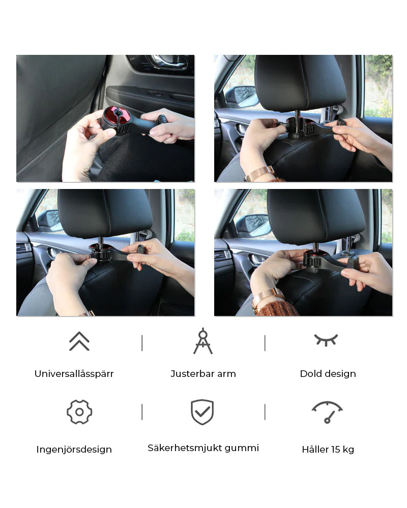Der Kopfstützenhalter bietet Ihnen einen einfachen Platz für Jacken und Taschen. Es kann in jedem handelsüblichen Fahrzeug, LKW oder Bus eingesetzt werden.