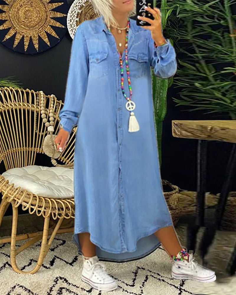 Einfarbiges, langärmliges Jeanskleid für Damen