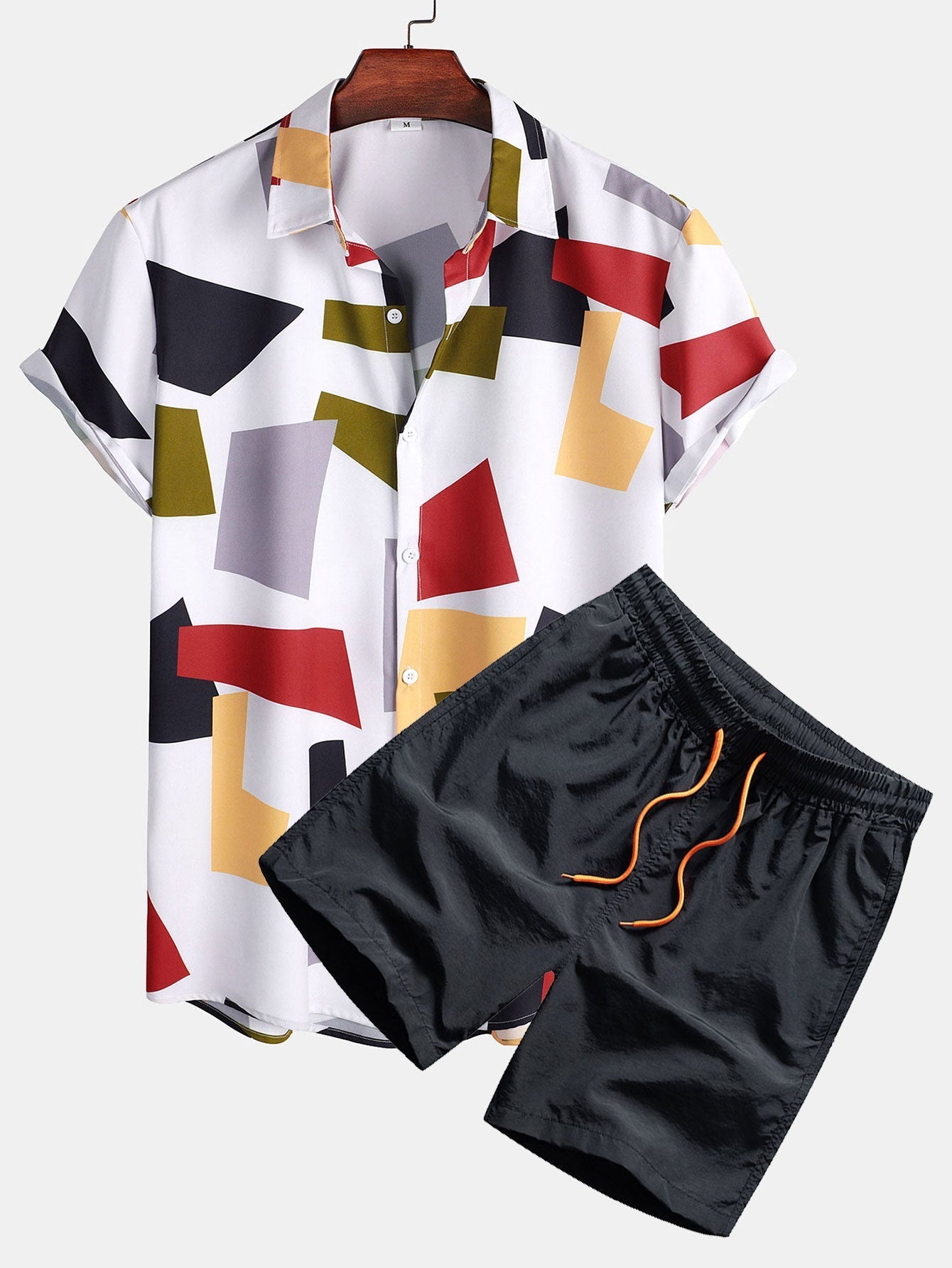 Hemd und Badeshorts mit geometrischem Farbblockdruck