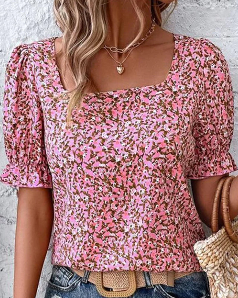 Kurzarmbluse mit Blumenmuster und quadratischem Ausschnitt