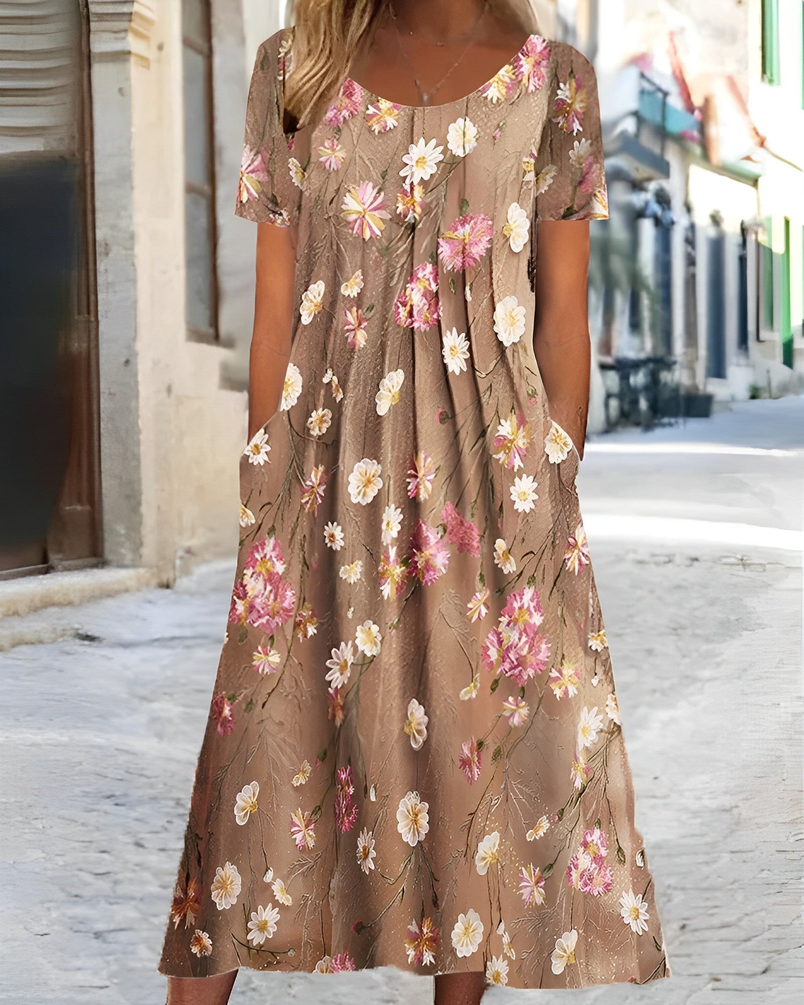 Kurzärmliges Kleid mit Rundhalsausschnitt und Blumenmuster