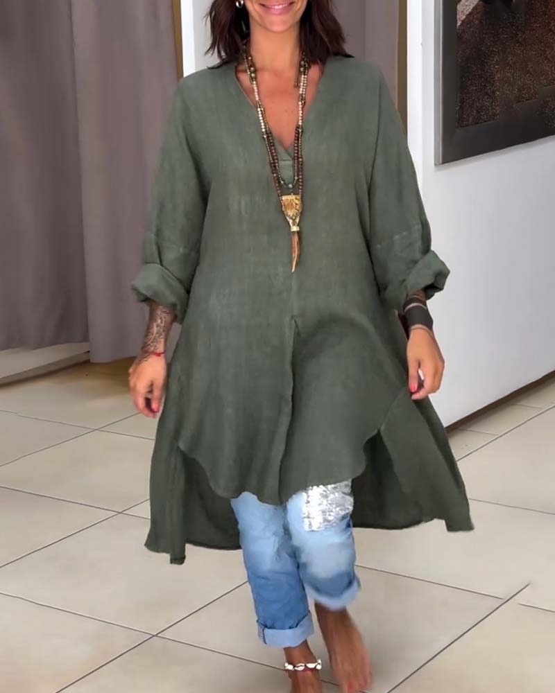 Langes Top aus Baumwolle und Leinen mit unregelmäßigem Saum