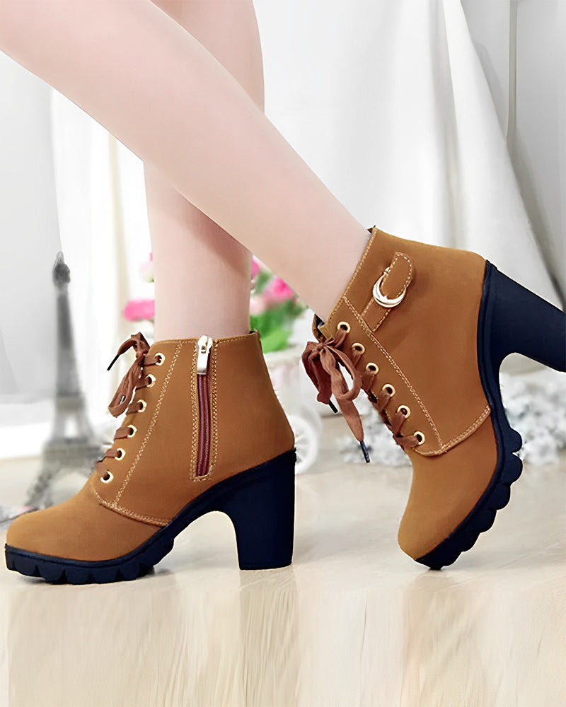 Martin-Stiefel mit Schnürsenkeln und dickem Absatz