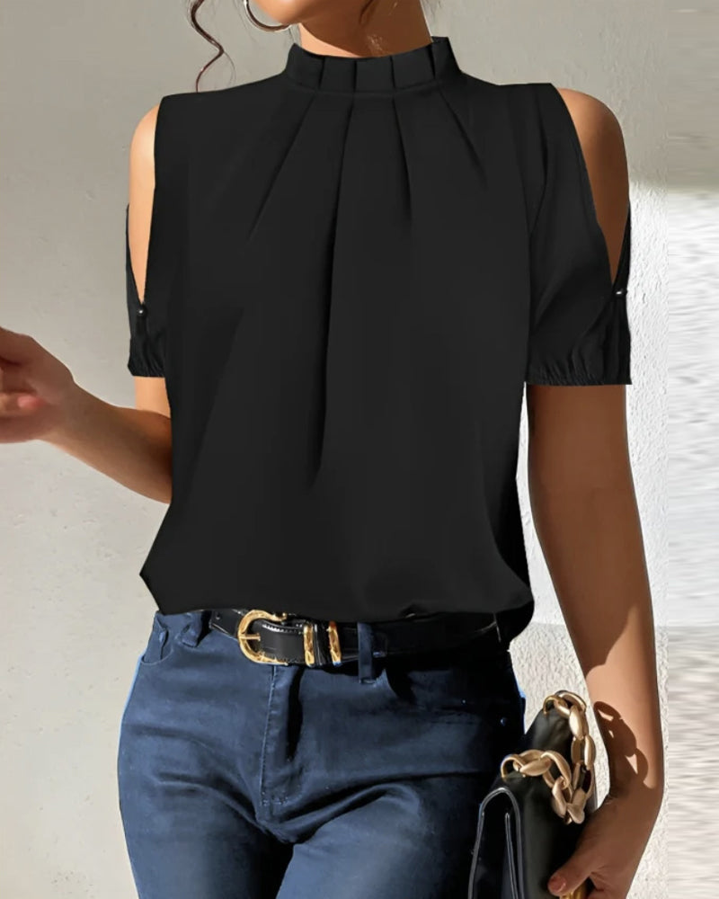 Schulterfreies, plissiertes, einfarbiges Oberteil