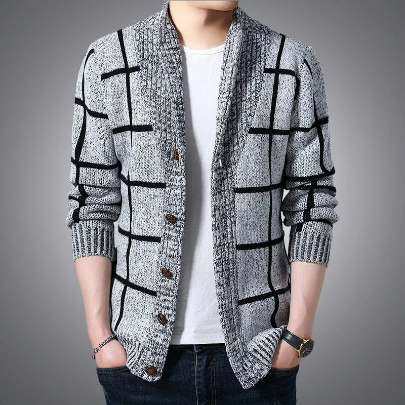 Werten Sie Ihre Wintergarderobe auf: Erleben Sie den eleganten Stil des karierten Slim-Fit-Strickpullovermantels für Herren!